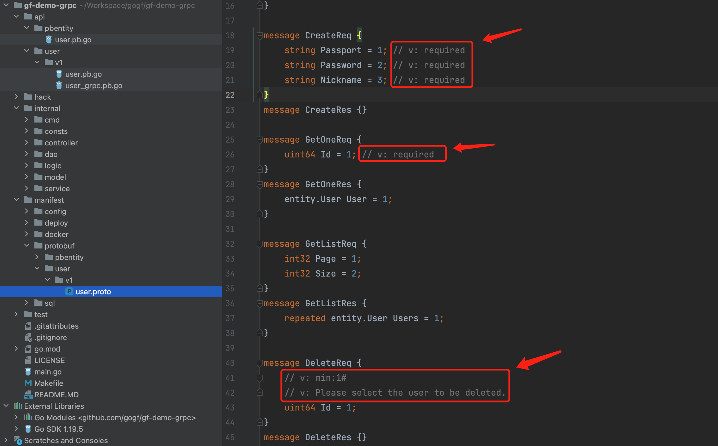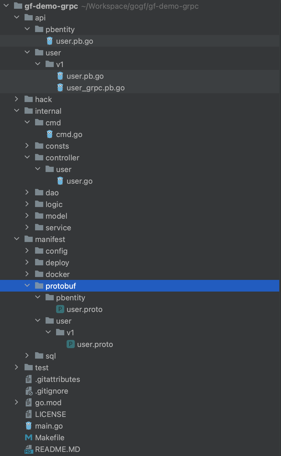 我们这里以项目 https://github.com/gogf/gf-demo-grpc 为例说明。