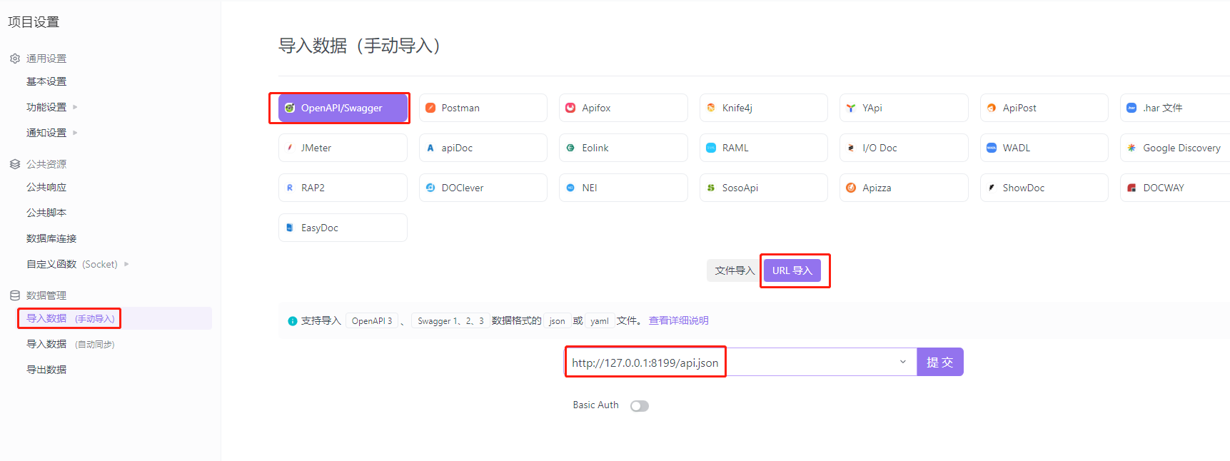 提示:最新版本的 SwaggerUI 页面已经不支持接口测试功能,如果对此有要求的同学可以自定义 SwaggerUI(参考 接口文档-自定义UI), 也可以导入接口文件 api.json 到第三方工具(例如 apifox)进行测试:
