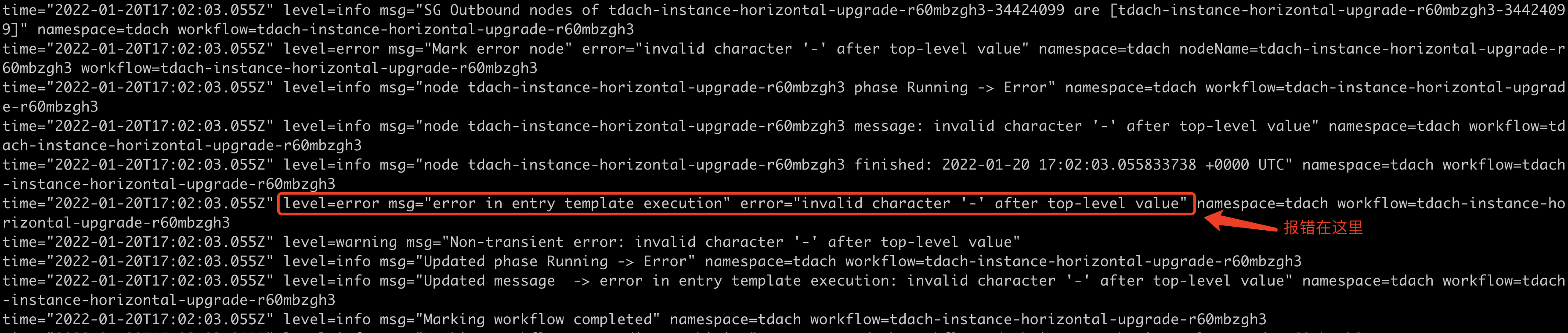 如下,当底层出现 error 级别的错误时,在顶层看到的就一个错误信息,请问如何排查?