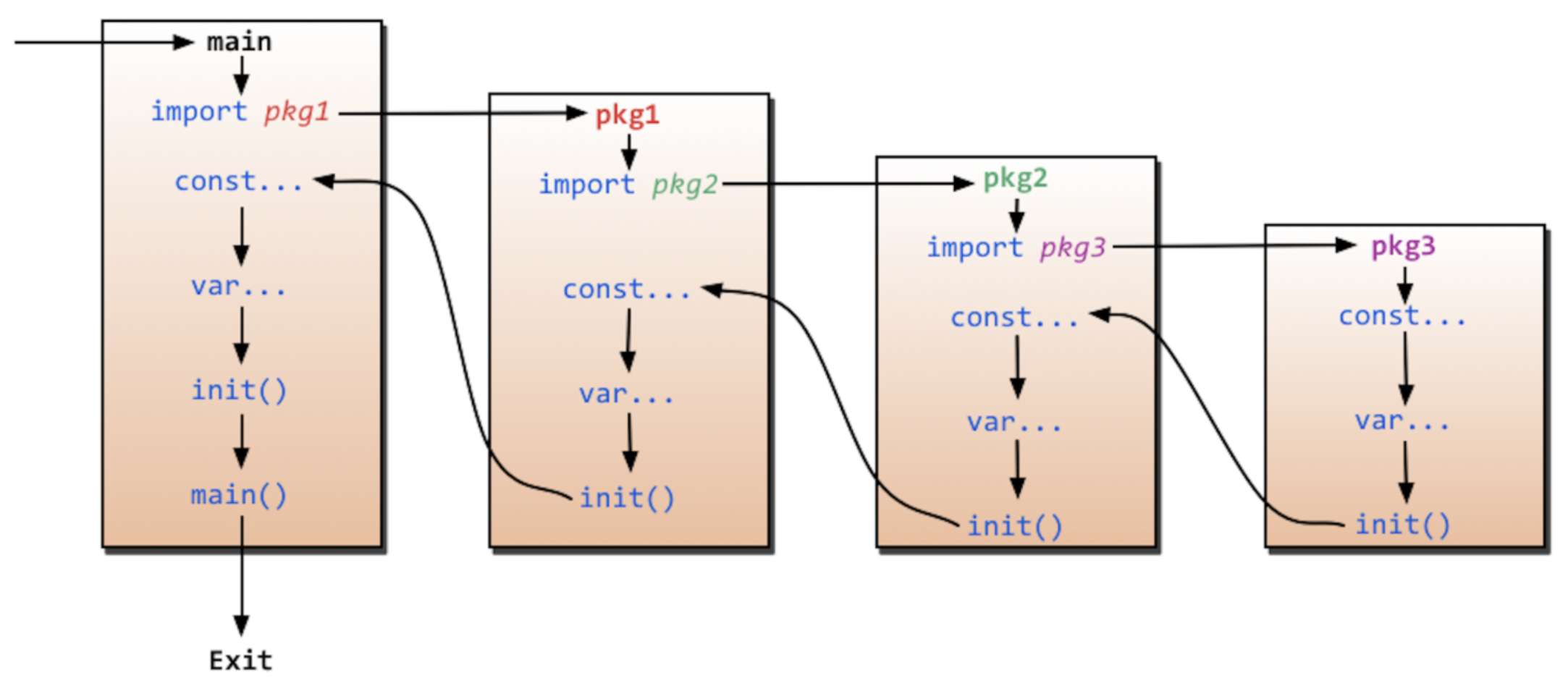特别注意:在 Golang v1.21 版本后, init 的初始化执行顺序发生了变化,并且可能会引起依赖 init 来执行初始化逻辑的包的问题。因此,不建议在 init 中执行 复杂的初始化逻辑, 建议是通过显式调用方式来实现模块复杂的初始化逻辑。