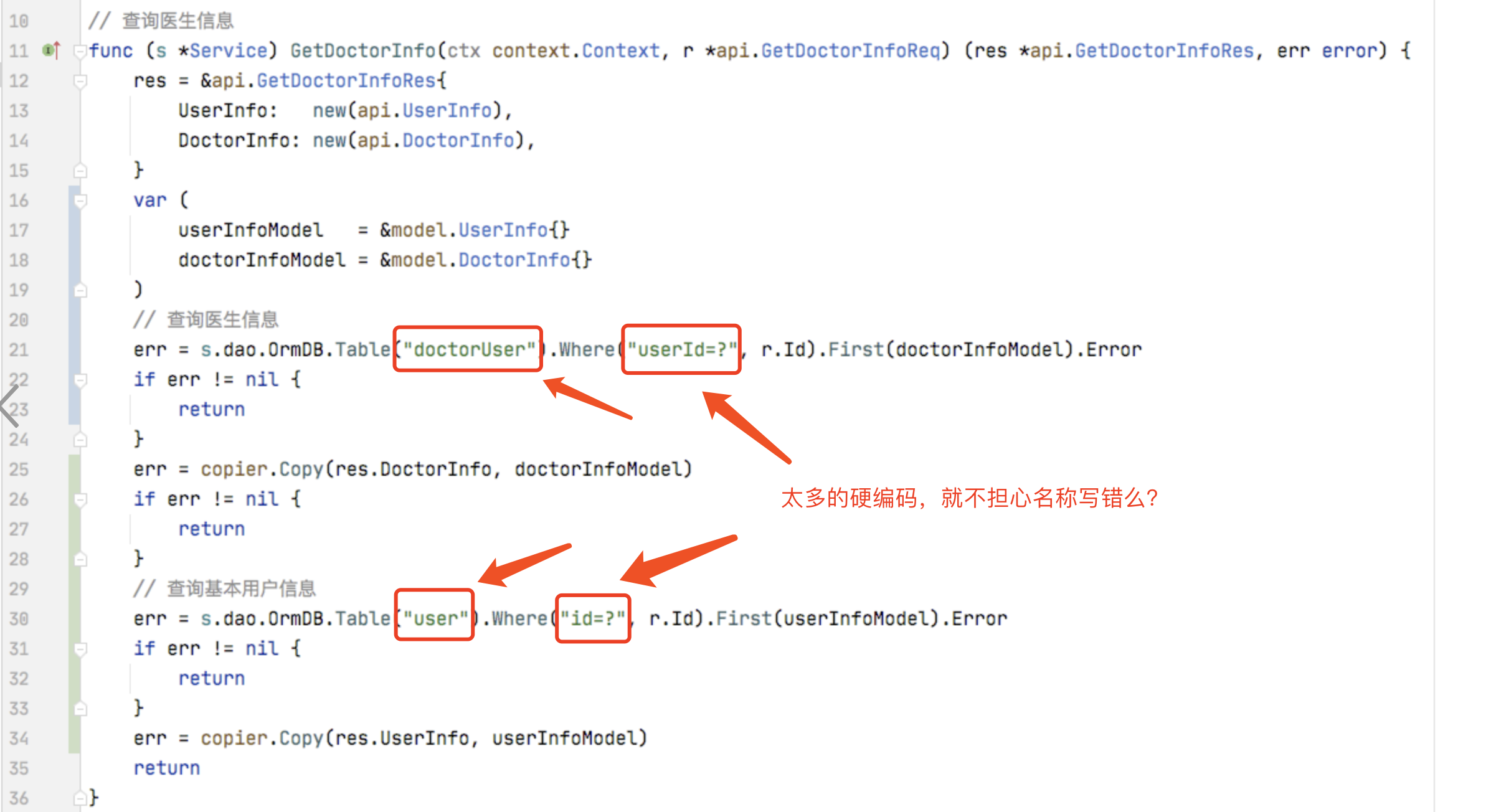 7、随处可见的字符串硬编码,如表名和字段的硬编码
