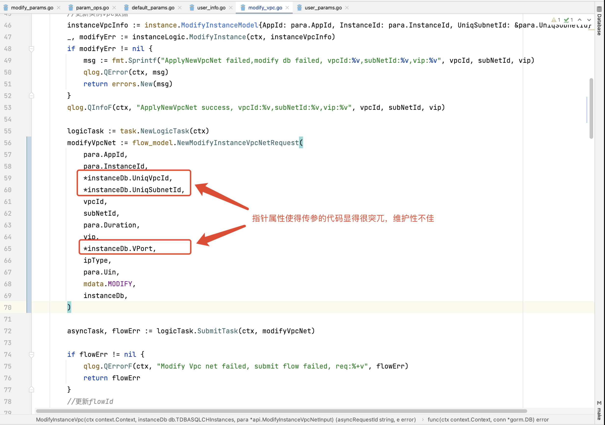 同时也影响了业务模型结构体定义设计,对开发者造成了错误习惯引导(上层业务模型的指针属性往往是为了迎合底层数据表实体对象,方便数据传递)。