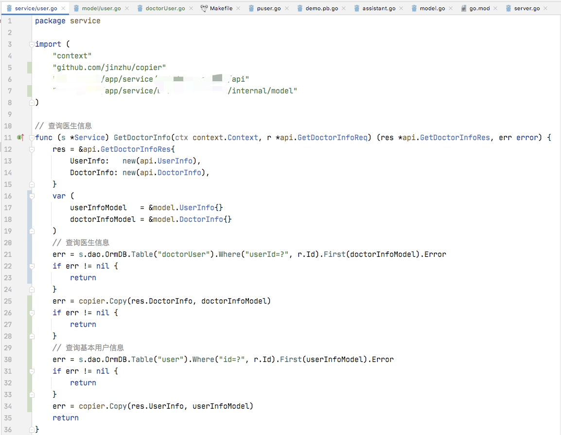 存在中间临时的模型对象,用于承接查询结果及返回结构对象赋值转换