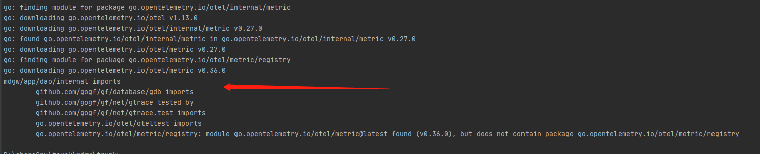 found (v0.36.0), but does not contain package go.opentelemetry.io/otel/metric/registry