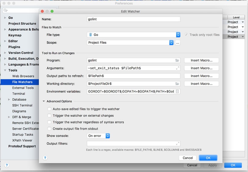 本文以 Goland 开发工具为基础,介绍在该IDE下的常用工具配置。