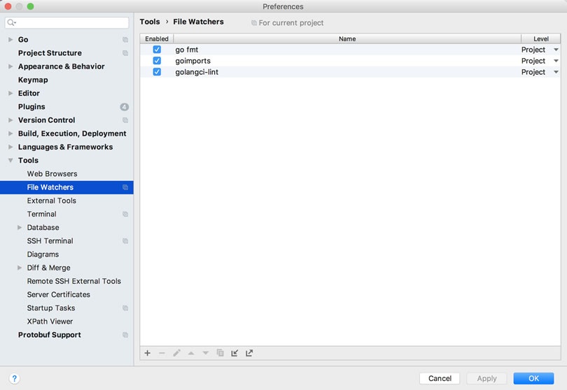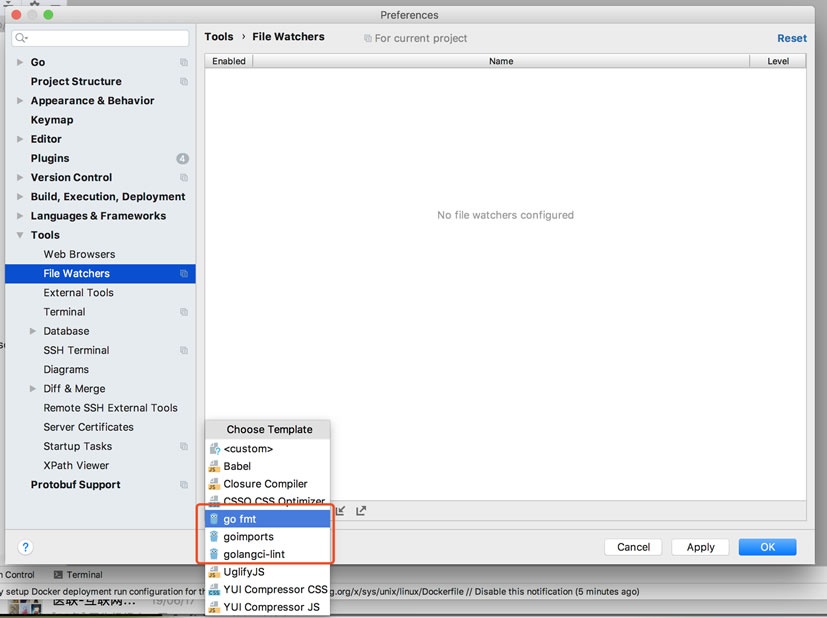 Goland的设置中,选择Tools-File Watchers,随后选择添加
