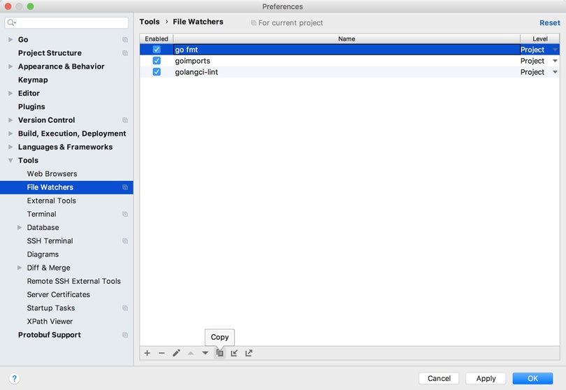 Goland的Tools-File Watchers配置下,通过复制go fmt的配置